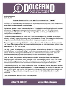 NEWS RELEASE – LAS VEGAS TRIAL COULD DECIDE FATE OF EMERGENCY ROOMS